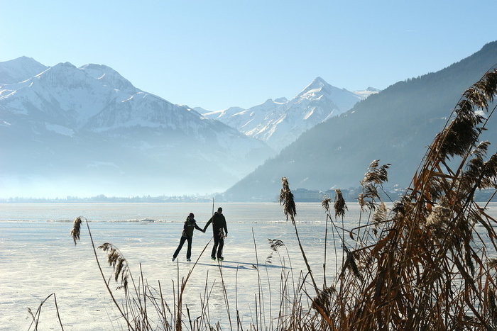 Taču pilsētiņu no vēja aizsedz kalnu masīvs, kura dēļ šo vietu ik ziemu apmeklē tūkstošiem sniega sporta veidu mīļotāju. Šīe kalni veido pakava formu un pārsvarā ir klāti mežiem un ganībām. Atliek tikai no pilsētas centra “noķert” speciālo "CityXpress" vagoniņu un doties augšup uz 1965m augsto Schmittenhöhe virsotni. No šejienes sākas plati nobraucieni ar grandioziem skatiem uz tuvējo apkārtni, kuru burtiski nosējušas mazas kalnu mājiņas.